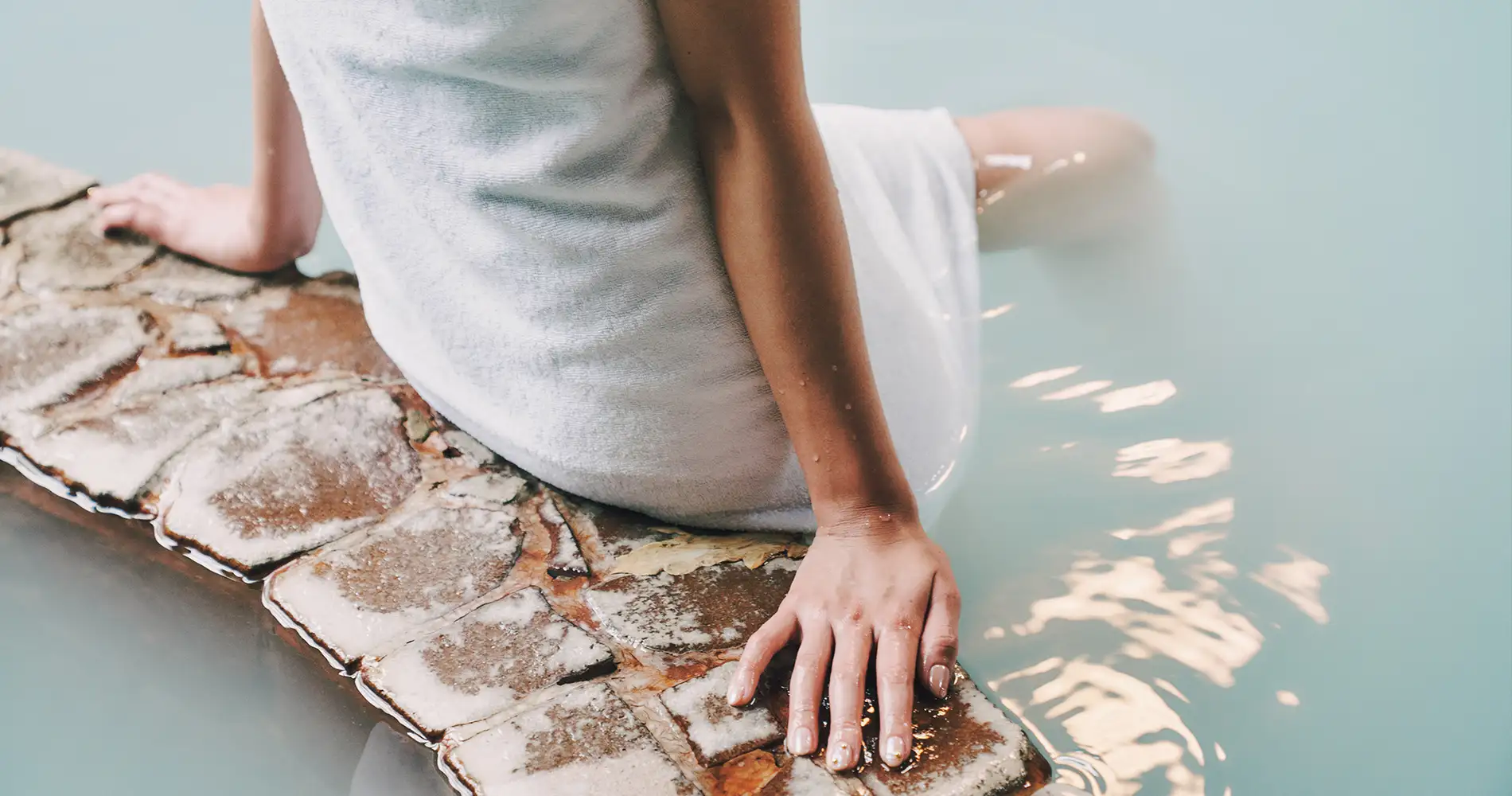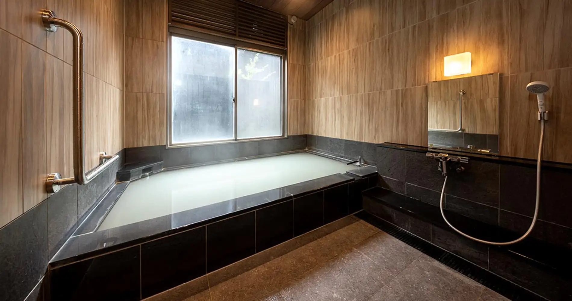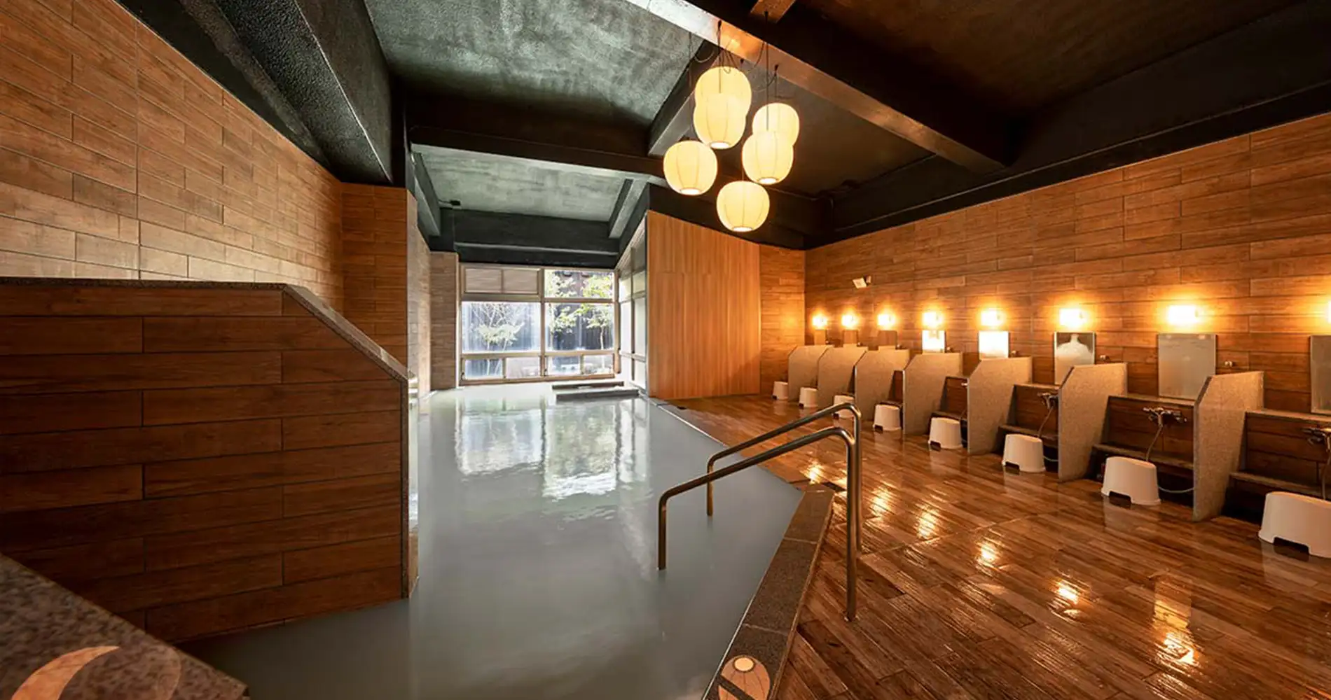 白濁の湯に浸かった瞬間から深呼吸したくなる、高い天井と大きな浴槽で心行くまでお楽しみください。