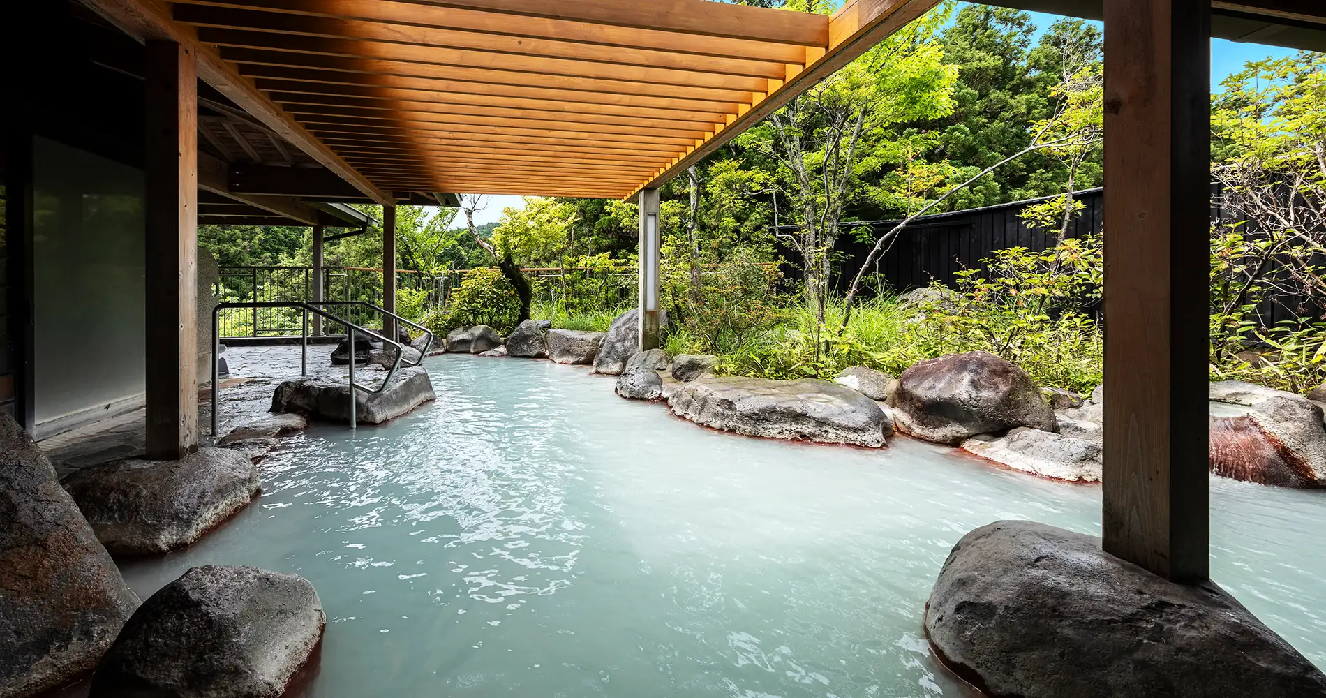 小さいお子様連れのご家族もゆっくりと。とろりとした白濁の温泉で極上なひと時を。