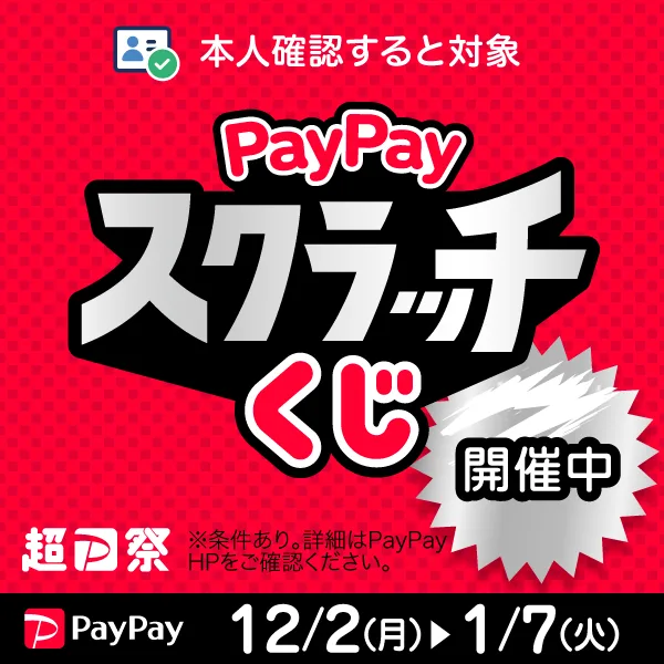 【超PayPay祭】PayPayスクラッチくじ開催中!![2024年12月2日(月)~2025年1月7日(火)]