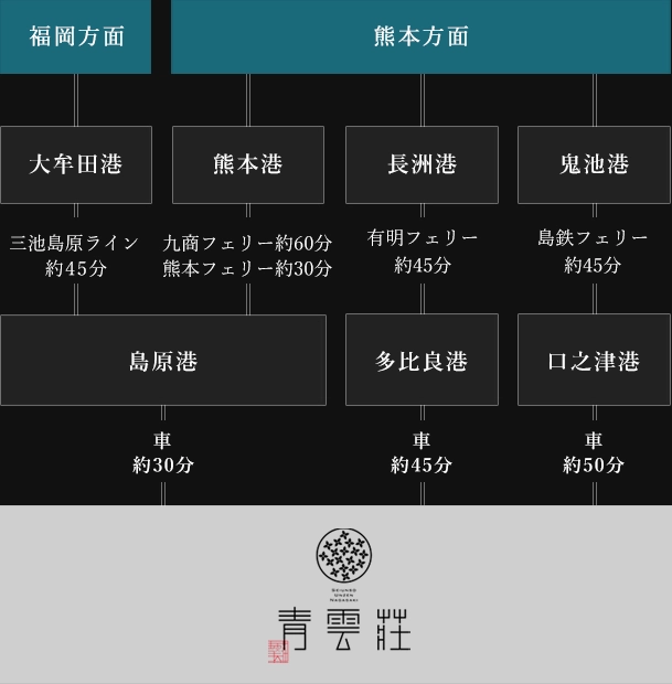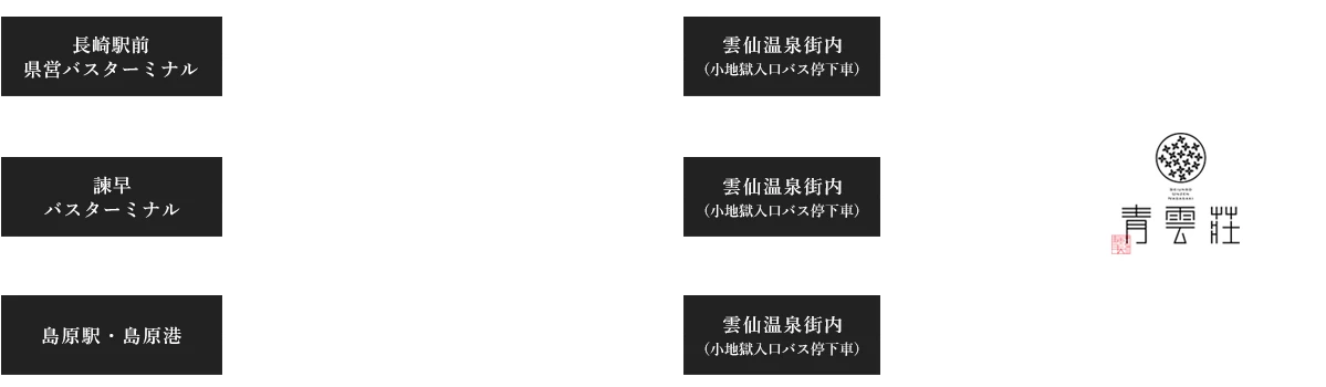 雲仙温泉街の「小地獄入口」が最寄りバス停となります。温泉街内であれば、無料送迎を行っておりますので、お気軽にお申し付けくださいませ。