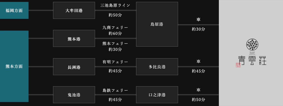 ■ 諫早市内からお越しの方:島鉄バス「小浜・雲仙・有家方面」のバスをご利用ください。