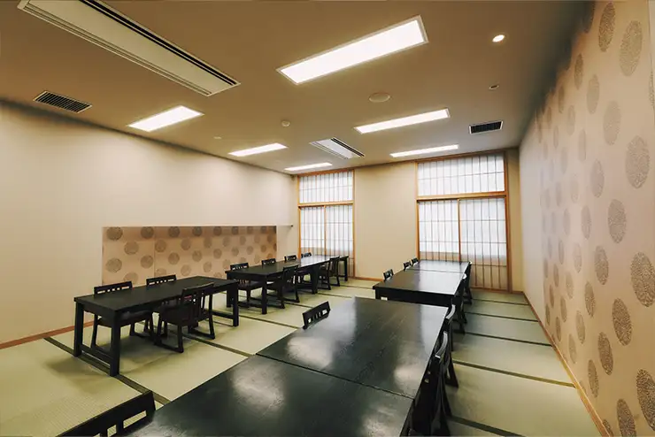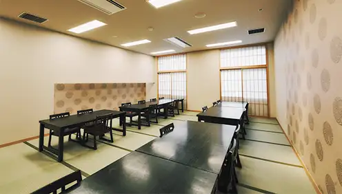 明るいお部屋で、同窓会から親族での会食まで団体様でご利用いただける宴会場をご用意しております。