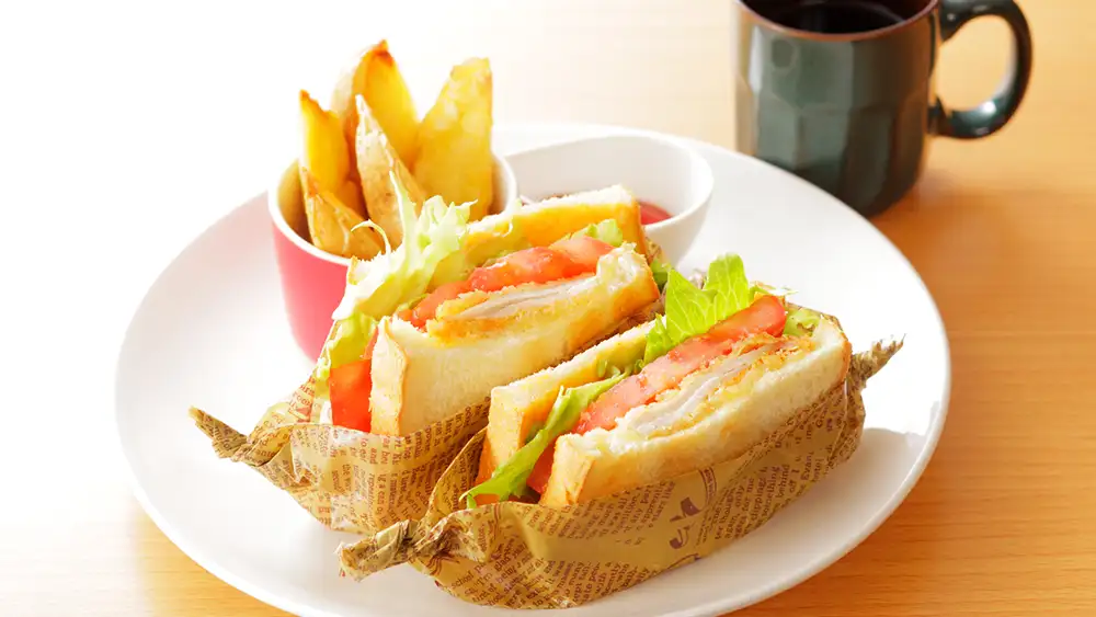 やわらかい雲仙ポークと地元野菜のホットサンド。人気の自家製フライドポテト付きでボリューム満点です。