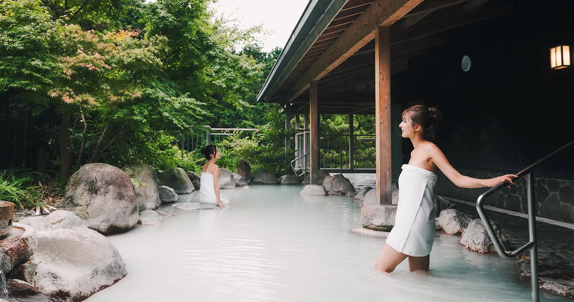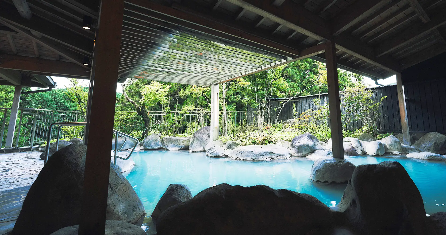 青雲荘には、開放的で自然豊かな露天風呂と、男湯女湯の2つ大浴場、貸切風呂がございます。